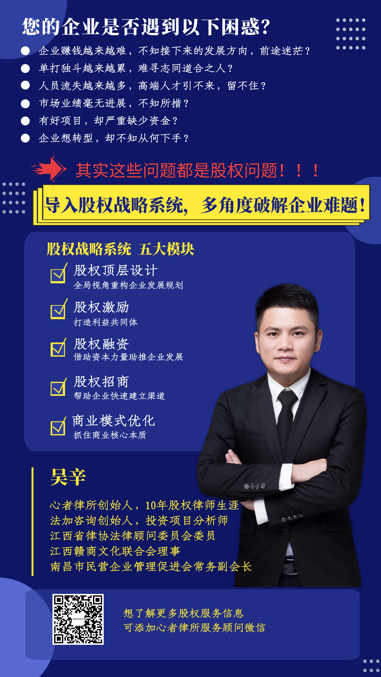 心者律所,作為一家以股權業務為特色的精品律所,傳播專業股權知識,用專業的力量助力更多企業,讓企業家懂股權、用股權,通過股權工具推動企業匯集更多人才、資金、資源,實現企業快速發展!