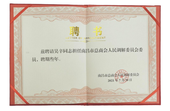 吳辛主任表示,作為南昌市總商會人民調(diào)解委員會委員,將充分發(fā)揮人民調(diào)解工作在化解非公有制企業(yè)矛盾糾紛的基礎(chǔ)作用,和維護社會和諧穩(wěn)定的“第一道防線”作用,同時結(jié)合本所股權(quán)服務(wù)特色,助力非公有制企業(yè)解決全生命周期的發(fā)展問題,為營造我市良好的營商環(huán)境貢獻力量。