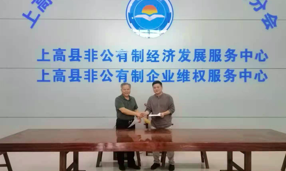 2021年8月17日,上高縣工業(yè)園區(qū)企業(yè)商會秘書長李森林與江西心者律師事務(wù)所主任吳辛在商會辦公室簽訂了《“萬所聯(lián)萬會”聯(lián)系合作框架協(xié)議》,上高縣工商聯(lián)主席陳小云、商會會長劉小暉出席簽約儀式。